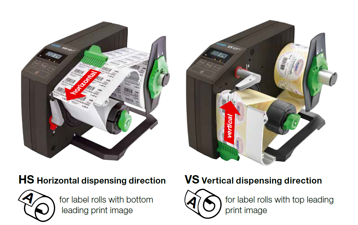 Na voljo sta dve izvedbi, horizontalna (HS) in vertikalna (VS), ki omogočata optimalno prilagoditev glede na orientacijo etikete na roli.